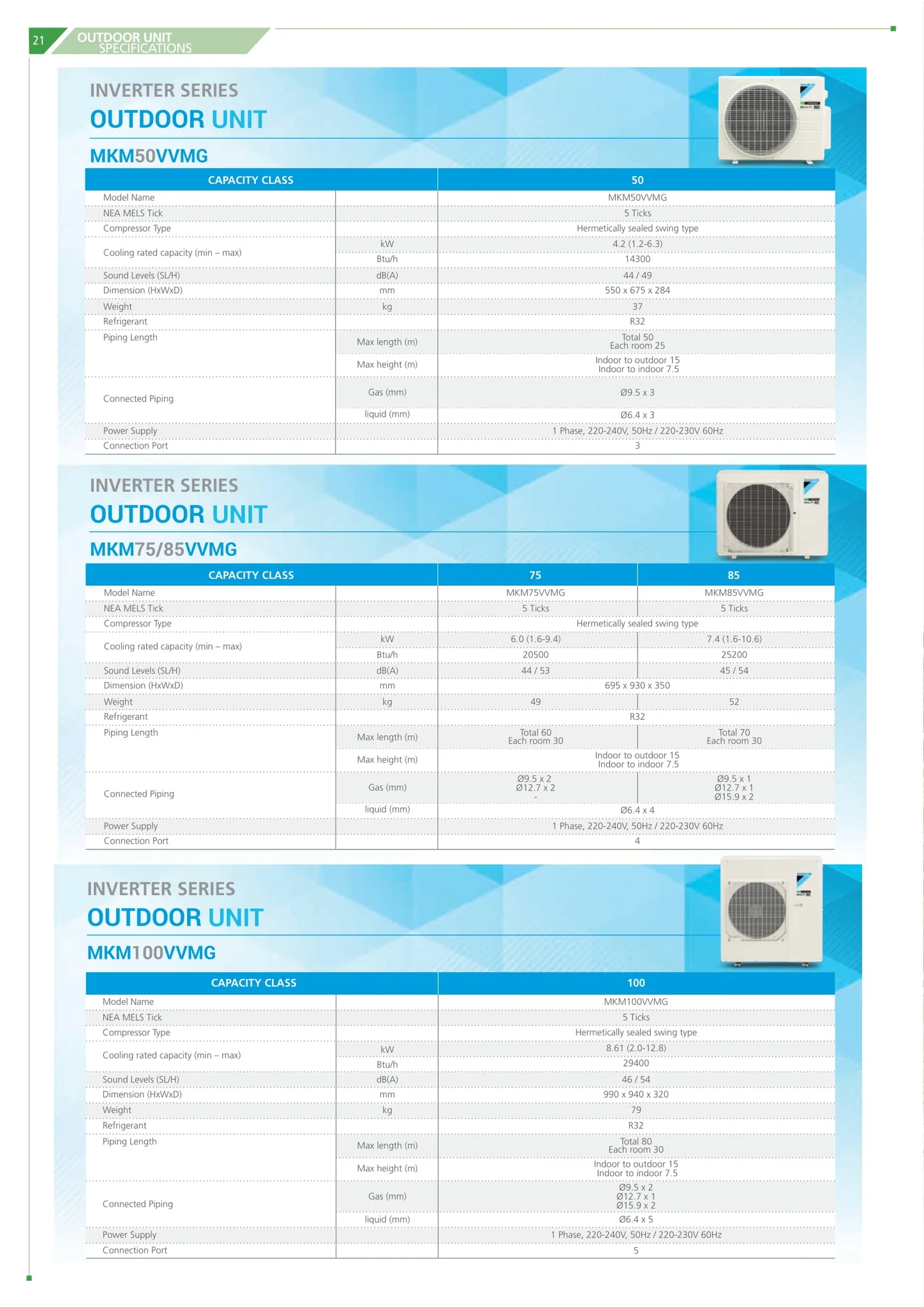 - 9K + 12K BTU System 2 (5 ticks): MKM50VVMG/CTKM25VVMG x 1 & CTKM35VVMG x 1